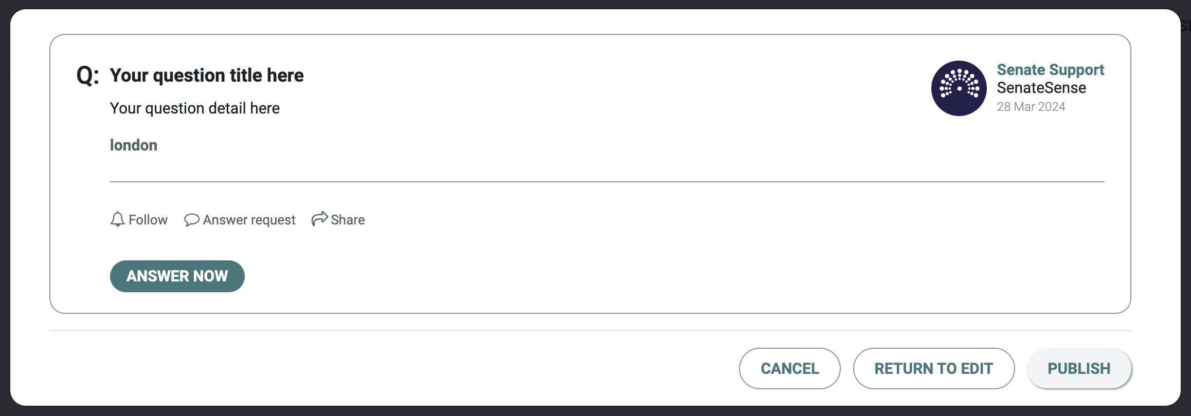 Receive regular updates on activity on the The Senate Senate (new joiners, new questions and new answers). To activate go to My Senate, click the edit icon on your profile picture and tick the box "Would you like to have a round up email of activity on this site - only Q&A and new joiners!".
